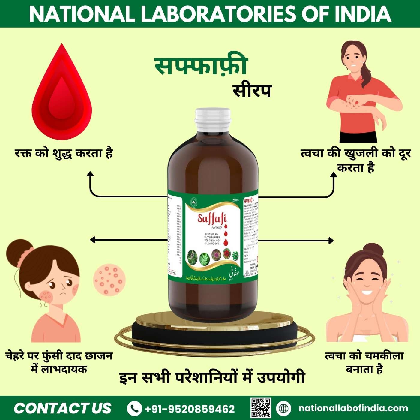 Saffafi Syrup:- Cleanse and rejuvenate your body with our powerful Blood Purifier formula. This natural blend of herbs and nutrients works to detoxify the bloodstream, promoting clear skin, improved digestion, and overall health. By eliminating toxins and balancing the body's systems, it supports a healthy complexion and helps prevent skin breakouts. Rich in antioxidants, it also boosts immunity and enhances vitality. Safe, natural, and effective, our Blood Purifier is the perfect addition to your wellness routine.Additional Information
